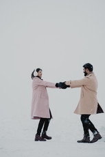 We planned a couple of days together and began with an early shoot in Kashmir. February turned out to be the perfect time—the snow season was nearing its end, but nature had other plans for us. As soon as we arrived, we were blessed with fresh snowfall, turning the entire landscape into a dreamy canvas. Shooting their love amidst the snow was nothing short of magical.
